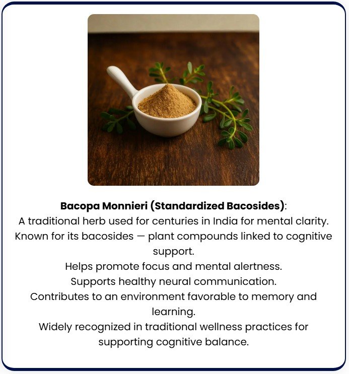 While BrainXCell highlights its primary bioactive extracts, it also includes complementary nutrients traditionally associated with cognitive support: